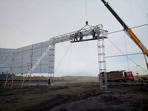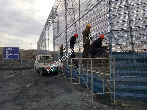 防風(fēng)抑塵網(wǎng)長度最長不得超過6.15米(網(wǎng)長越長,鋼結(jié)構(gòu)的距離越遠(yuǎn),擋風(fēng)效果越差),峰高7.5cm防風(fēng)效果最佳,此為國家科學(xué)院風(fēng)洞試驗(yàn)得出的結(jié)論,由于各地所處地理環(huán)境不同,氣象條件不同,也應(yīng)采用不同規(guī)格型號的擋風(fēng)抑塵墻才能達(dá)到有效防風(fēng)抑塵的效果。需經(jīng)專業(yè)人員設(shè)計(jì),才能保證擋風(fēng)抑塵墻的安全性與環(huán)保效果。
