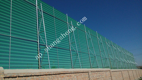 防風(fēng)抑塵網(wǎng)長度最長不得超過6.15米(網(wǎng)長越長,鋼結(jié)構(gòu)的距離越遠,擋風(fēng)效果越差),峰高7.5cm防風(fēng)效果最佳,此為國家科學(xué)院風(fēng)洞試驗得出的結(jié)論,由于各地所處地理環(huán)境不同,氣象條件不同,也應(yīng)采用不同規(guī)格型號的擋風(fēng)抑塵墻才能達到有效防風(fēng)抑塵的效果。需經(jīng)專業(yè)人員設(shè)計,才能保證擋風(fēng)抑塵墻的安全性與環(huán)保效果。